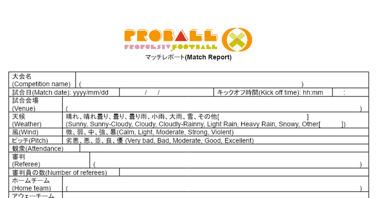 大会名 (Competition name) (                            ) 試合日(Match date): yyyy/mm/dd / /          キックオフ時間(Kick off time): h...